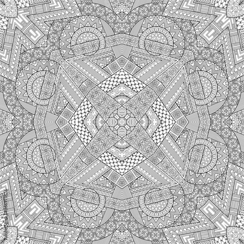 Obraz premium Vector ethnic hand drawn line art seamless pattern