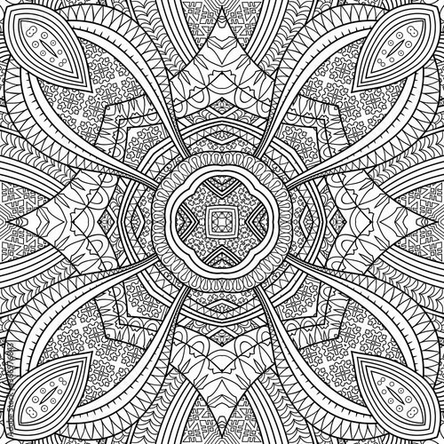 Fototapeta premium Vector ethnic hand drawn line art seamless pattern