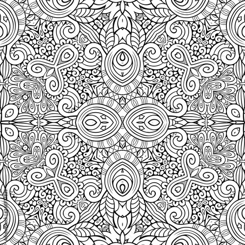 Fototapeta premium Vector ethnic hand drawn line art seamless pattern