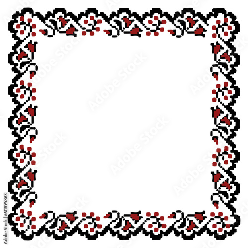 © pixel_aesthetic, Obraz premium Vector ethnic Ukrainian frame pattern with floral elements