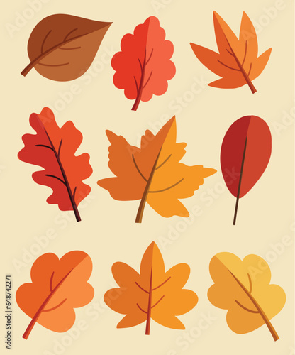 Obraz premium Vector flat autumn leaves collection