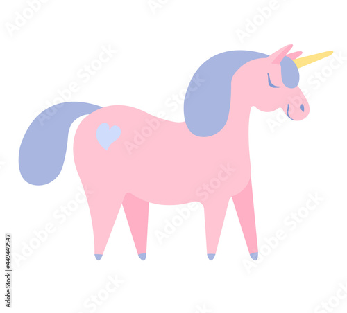 © Sweta, Naklejka premium Vector flat cartoon hand drawn pink unicorn isolated on white background
