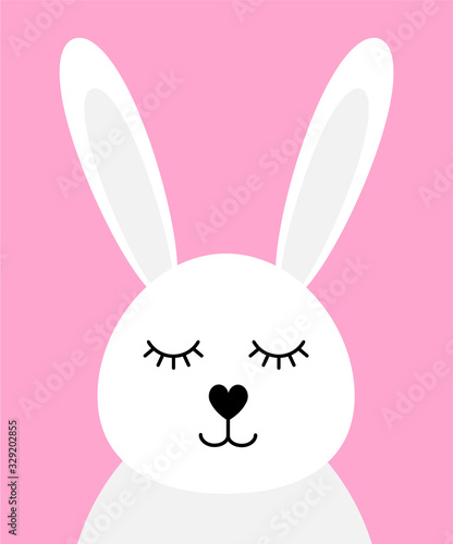 © Sweta, Fototapeta premium Vector flat cartoon white rabbit face head isolated on pink background