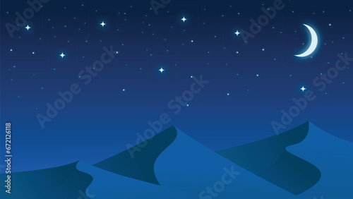 © Aditya, Obraz premium Vector Flat Desert at Night with Beautiful Sky