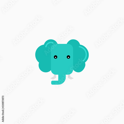 © Hadi, Fototapeta premium Vector Flat Elephant's face isolated. Cartoon style illustration. Animal's head logo. Object for web, poster, banner, print design. Advertisement decoration element.