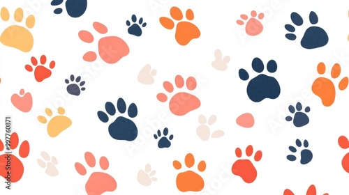 Obraz premium Vector Flat Illustration of Various Paw Prints. Pastel Color Palette on White...