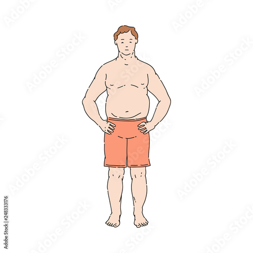 Fototapeta premium Vector flat overweight obese unhappy man topless