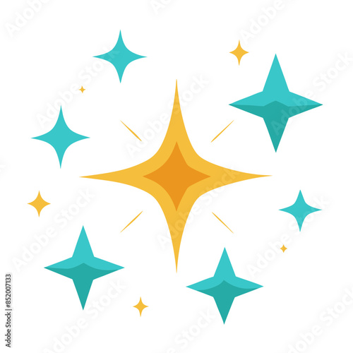 © Artisticeyes, Obraz premium Vector flat sparkling star collection