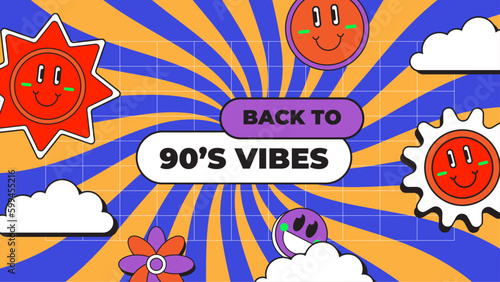 © Salman, Fototapeta premium Vector flat style nostalgic background 90 colorful colourful