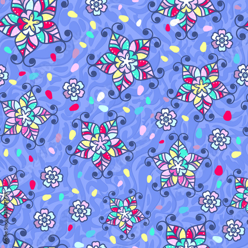 Fototapeta premium Vector floral ethnic seamless pattern in doodle style with flowers and...