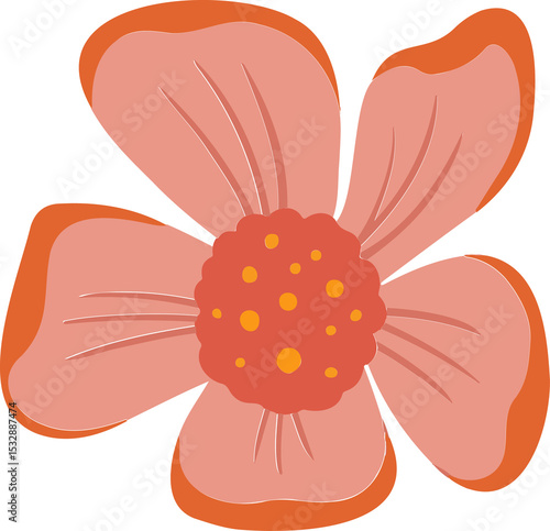 Obraz premium Vector flower is showing five coral petals with yellow-dotted orange center...