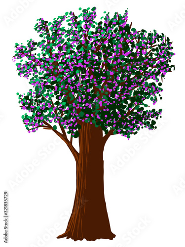 © evgenii141, Obraz premium Vector flowering tree on white background