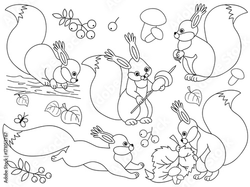 © TheCreativeMill, Fototapeta premium Vector Forest Squirrels Set. Squirrels Clipart Vector Illustration.