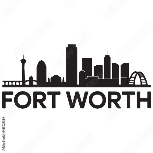 Obraz premium Vector Fort Worth skyline. Travel Fort Worth famous landmarks. Business and tourism concept for presentation, banner, web site. Vector black silhouette. with white background