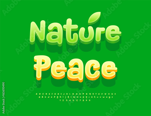 Fototapeta premium Vector Fresh badge Nature Peace. Funny Green 3D Font. Cute Alphabet Letters...