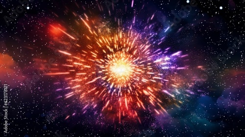 Fototapeta premium Vector galactic star background with exploding firewor.Generative AI