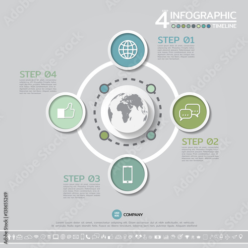 © natchapohn, Fototapeta premium Vector geometric Infographics design template in 4 steps, options or processes for cycle diagram, graph, presentation and chart with icon set.