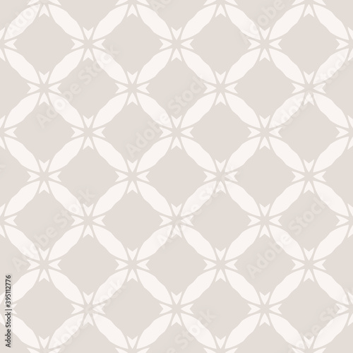 © Olgastocker, Fototapeta premium Vector geometric ornament. Abstract seamless pattern with grid, lattice, net, floral shapes, diamonds, tiles. Subtle beige background. Simple texture. Repeat design for wallpapers, print, linen, decor