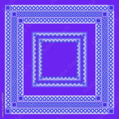 © Valentina, Obraz premium Vector geometric, pixel pattern for the design of a shawl, hijab, scarf, frame, scheme for embroidery.