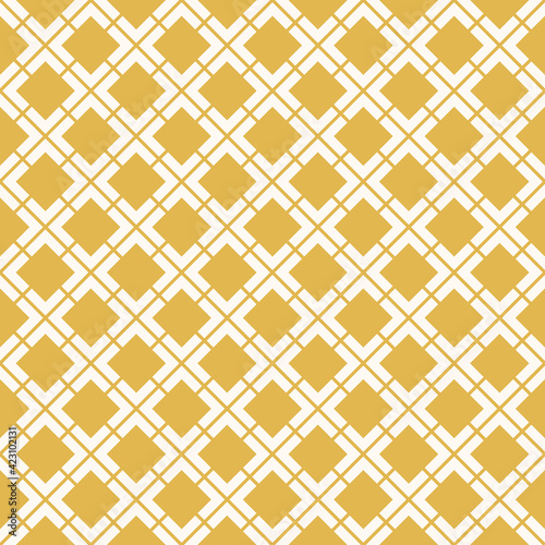 © Olgastocker, Fototapeta premium Vector geometric seamless pattern. Abstract yellow texture with diamond shapes, rhombuses, squares, grid, lattice, grill, net. Stylish minimal background. Simple repeat design for decor, textile