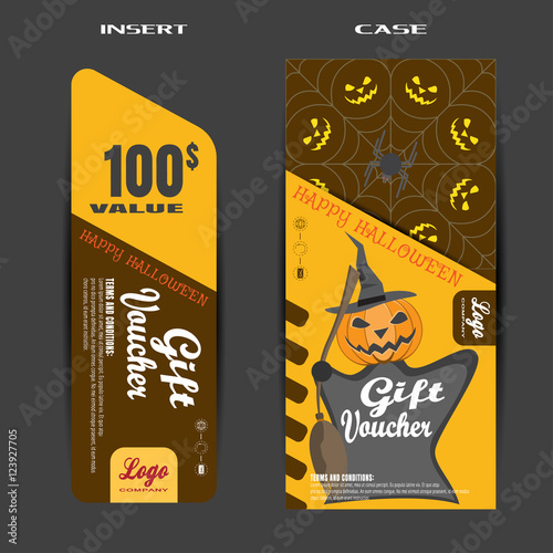 Naklejka premium Vector gift voucher to Halloween sale with insert on the brown background.