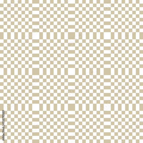 © Olgastocker, Fototapeta premium Vector golden checkered geometric seamless pattern with small squares, repeat tiles. Abstract gold and white minimal texture. Pixel art. Simple modern minimalist background. Design for decor, textile