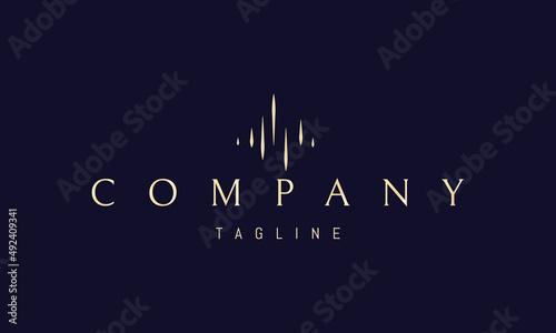© Дмитрий Василега, Fototapeta premium Vector golden logo on which an abstract image of the city in the form of a light wave.