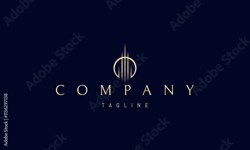 Obraz premium Vector golden logo with an abstract image of a tall tower against the...