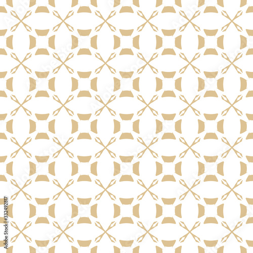 © Olgastocker, Fototapeta premium Vector golden ornament pattern in Asian style. White and gold elegant floral seamless texture with curved geometric shapes, crosses, circles, grid, lattice. Abstract repeatable ornamental background
