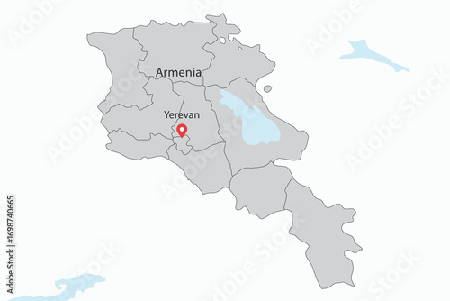 © Djerdj, Obraz premium Vector graphic artwork suitable for print and web containing flat detailed map of ARMENIA
