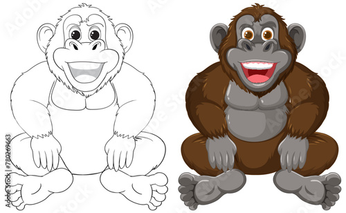 Obraz premium Vector graphic of a monkey, outlined and colored