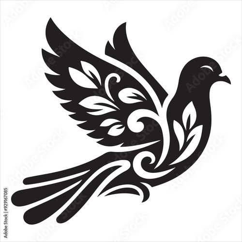 © Silicon, Obraz premium Vector graphic of a soaring dove or pigeon on a white background