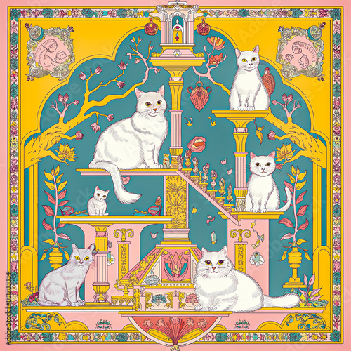 Fototapeta premium vector graphic Persian A cat tree with platforms, hideaways, and scratching...