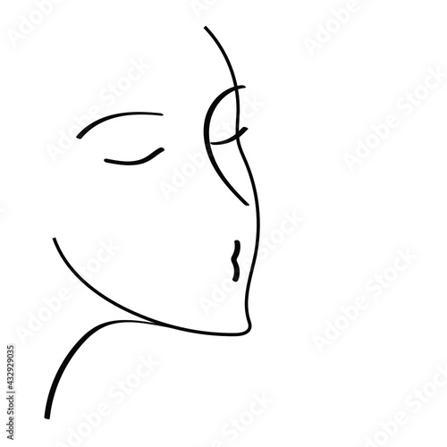 © Inna, Fototapeta premium Vector graphics-contour drawing with a black thick line of a beautiful female young face close-up with closed eyes on a white background isolated. Concept beauty salon