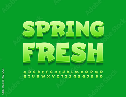 © Popskraft, Fototapeta premium Vector green banner Spring Fresh. Creative modern Font. Cute Alphabet Letters and Numbers set