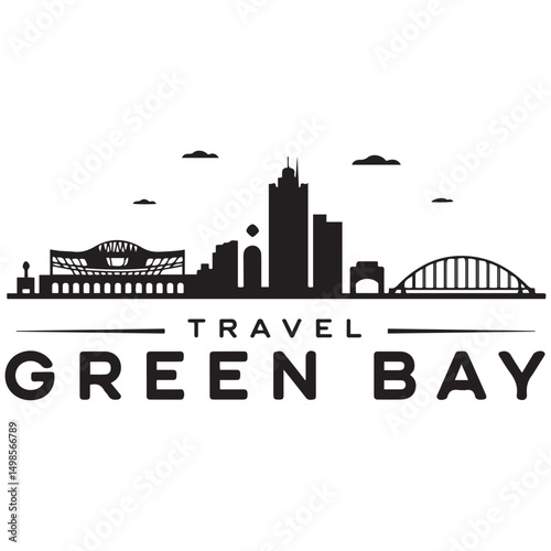 Obraz premium Vector Green Bay skyline. Travel Green Bay famous landmarks. Business and tourism concept for presentation, banner, web site. Vector black silhouette. with white background