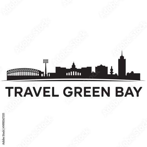 Obraz premium Vector Green Bay skyline. Travel Green Bay famous landmarks. Business and tourism concept for presentation, banner, web site. Vector black silhouette. with white background