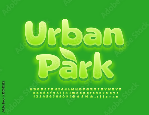 Fototapeta premium Vector green Emblem Urban Park. Creative Glowing Font. Set of modern Alphabet...