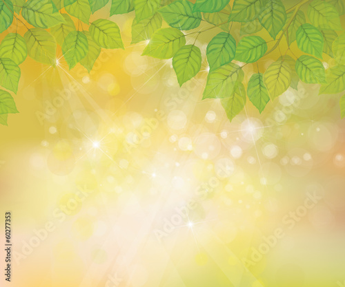 © rvika, Fototapeta premium Vector green leaves on sunshine background.