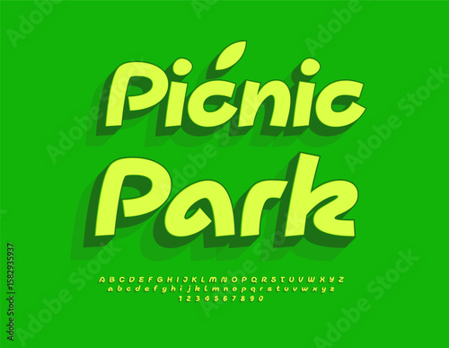 © Popskraft, Fototapeta premium Vector Green logo Picnic Park. Handwritten 3D Font. Stylish Alphabet Letters and Numbers set