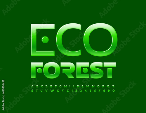 Fototapeta premium Vector green sign Eco Forest with glossy creative Font. Futuristic Alphabet Letters and Numbers set