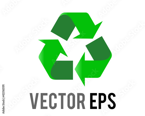 Obraz premium Vector green universal recycling symbol icon, three arrows pointing clockwise...