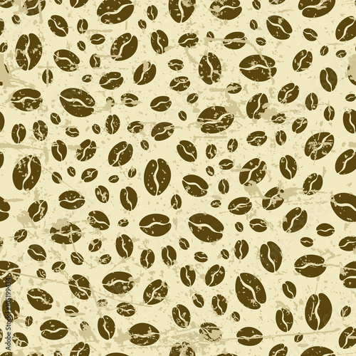 © Alina Kryshtal, Obraz premium Vector grunge seamless pattern with coffee beans. Food background.