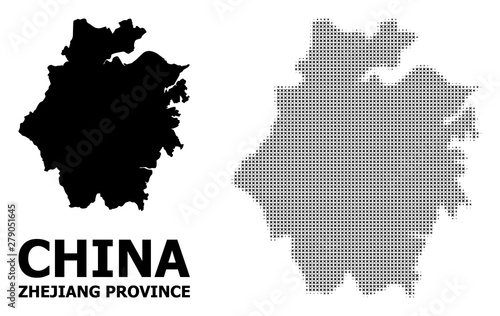 © Sergey, Obraz premium Vector Halftone Pattern and Solid Map of Zhejiang Province