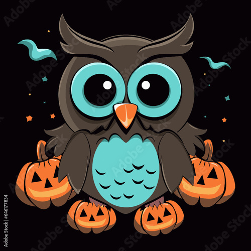 Fototapeta premium Vector Halloween Owl with Pumpkins. Holiday Clipart.