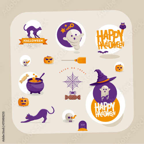 © pikolorante, Naklejka premium Vector Halloween symbol design set