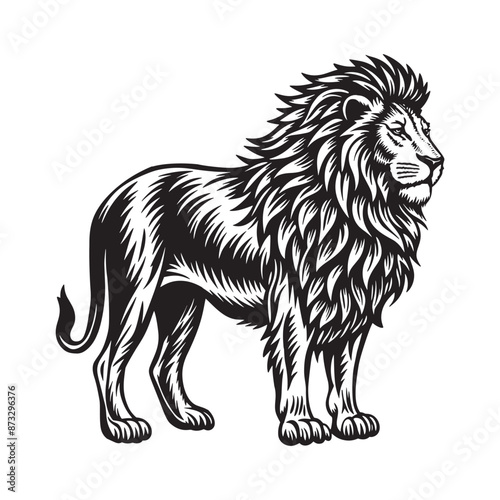 © дима селиванов, Fototapeta premium Vector hand drawn black white lion