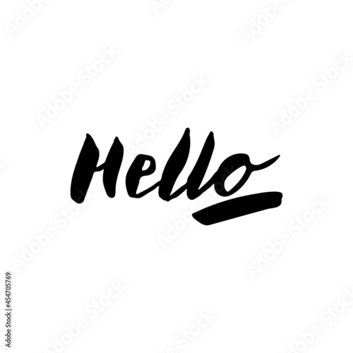 Obraz premium Vector hand drawn brush lettering greeting. Hello