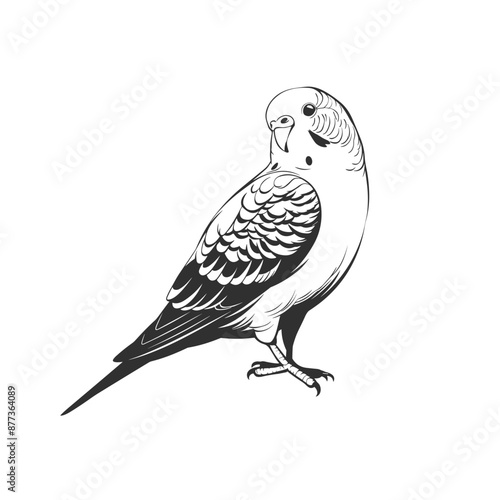 © Bodega, Fototapeta premium Vector hand drawn budgerigar isolated on white background Parakeet on a branch, black and white Budgerigar, Parrot, Green Pet Parakeet, vector illustration