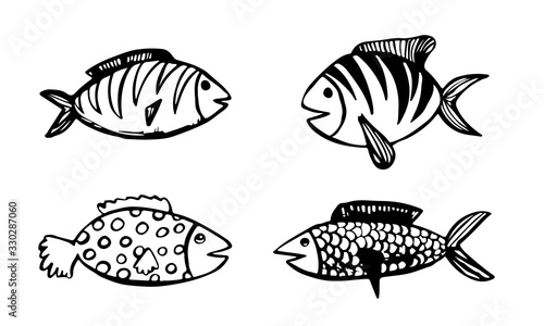 © Ангелина, Obraz premium Vector hand drawn doodle fish icon. Logo design template. Cute hand drawn childish linear illustration for print, web